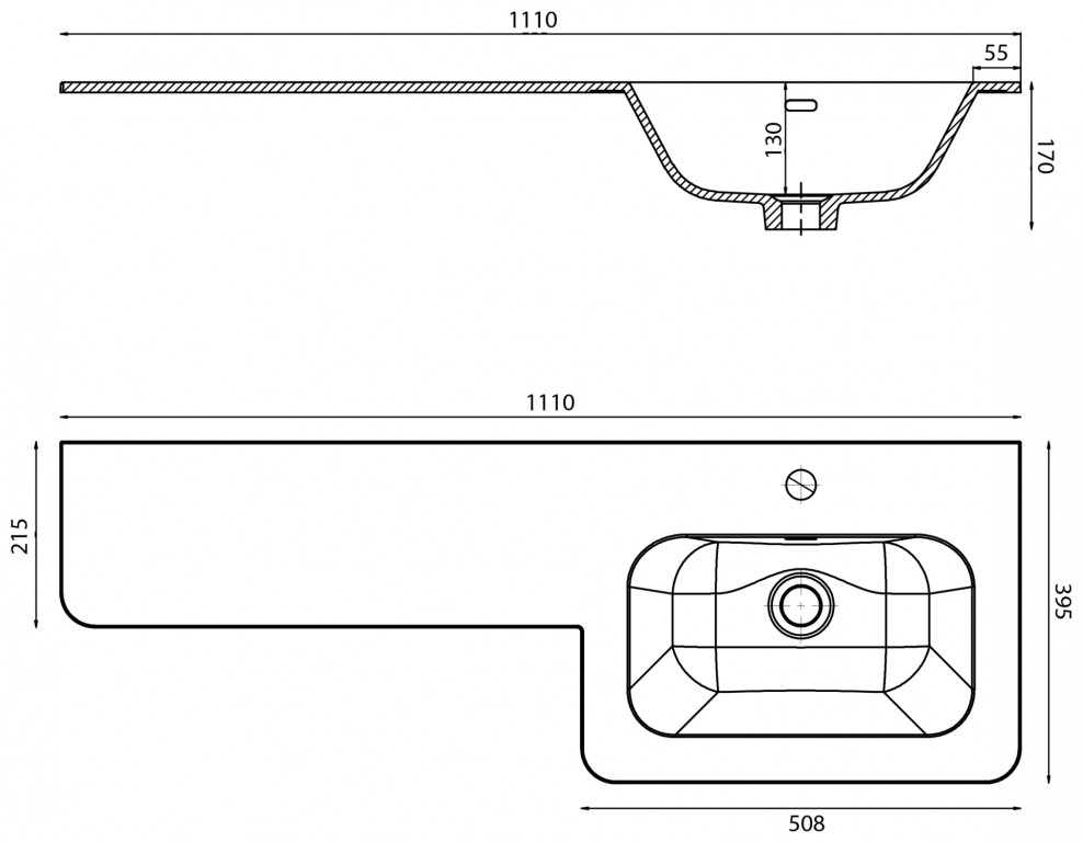 Suburb 1110mm Right Hand Basin 1th