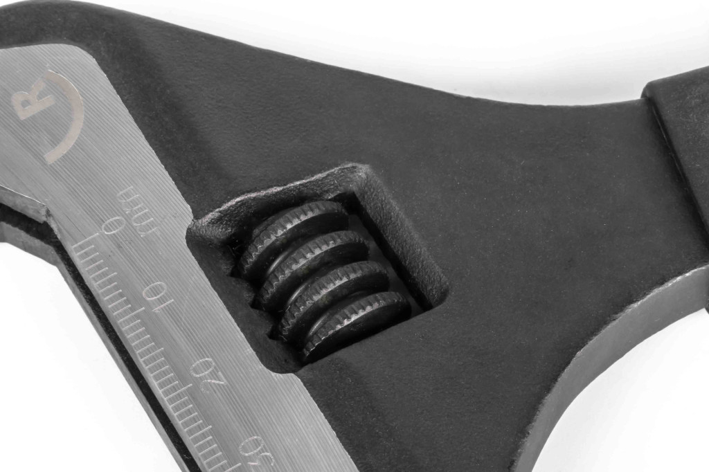 This 6" wide jaw wrench is made from hot forged chrome vanadium steel, and has an 34mm max opening range. Ideal for use when working in confined spaces. Hot forged from chrome vanadium steel to industrial standard specifications this wrench has a smooth, accurate size adjustment. Non-slip ergonomic softgrip handles deliver a positive grip during use. They are supplied with removable soft-grip jaw protectors which prevent damaging chromed or polished surfaces.