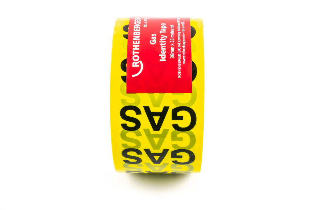 Laminated finish for a superior appearance and measure 38mm wide x 33 metres long. “Gas” Identity Tape (Black on Yellow)