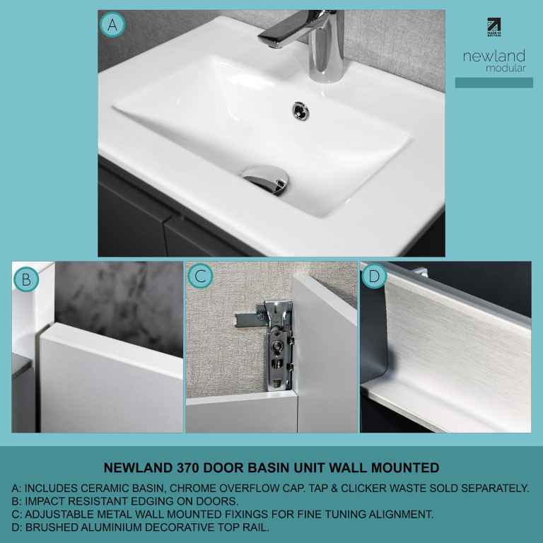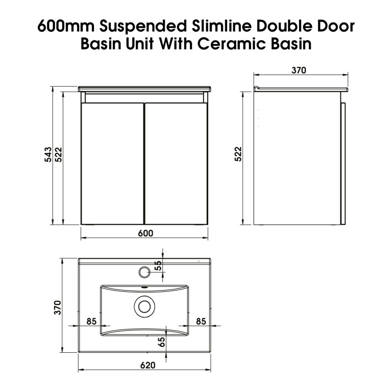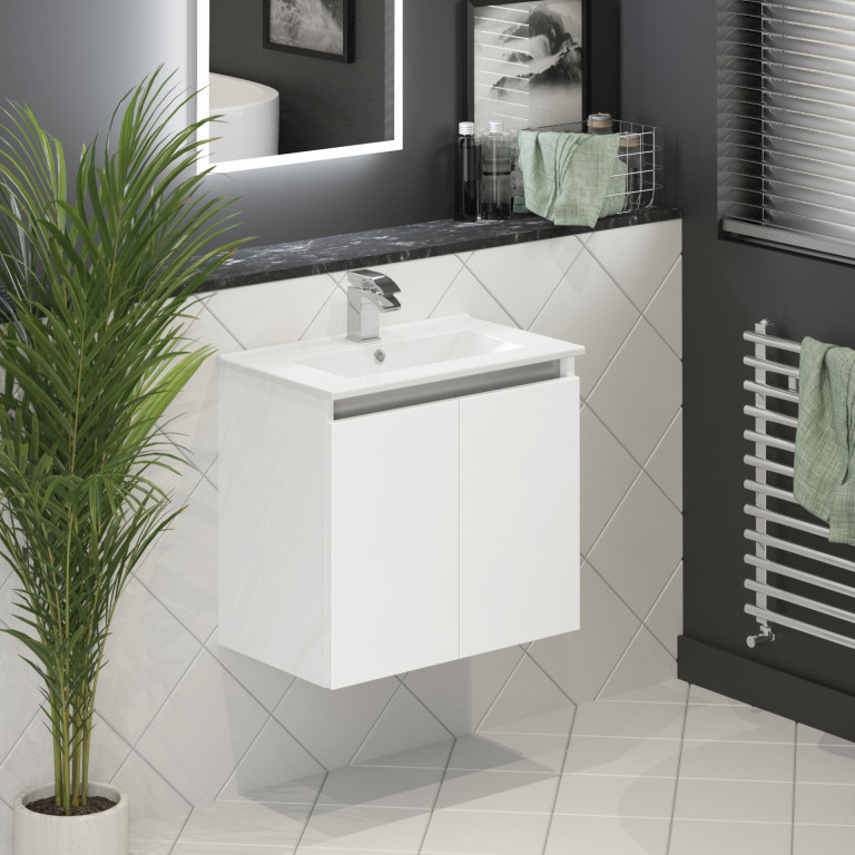 Newland 600mm Slimline Double Door Suspended Basin Unit Including Ceramic Basin -...