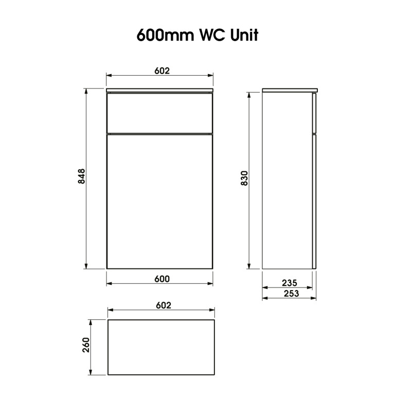 Newland 600mm WC Unit Including Worktop, (No Cistern) - White Gloss