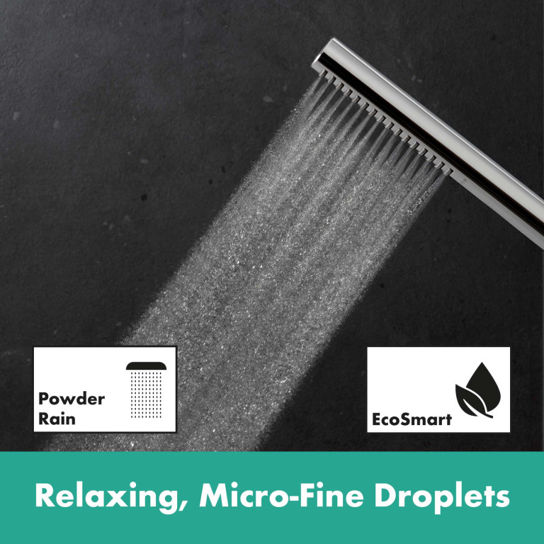 - Shower head with PowderRain: be pampered by micro-fine droplets in an immersive shower experience