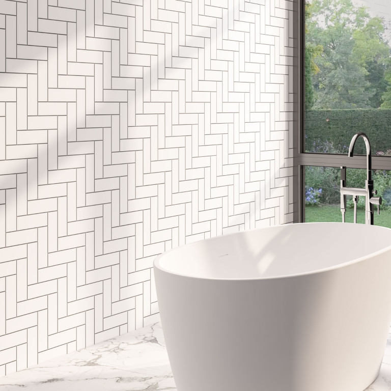 PVC Satinpanel 1000 x 2400mm - White Metro Tile Cutline