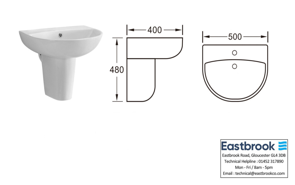 Osterley 450mm Basin only, with 1 Tap Hole - White (Pedestal Sold Separately)