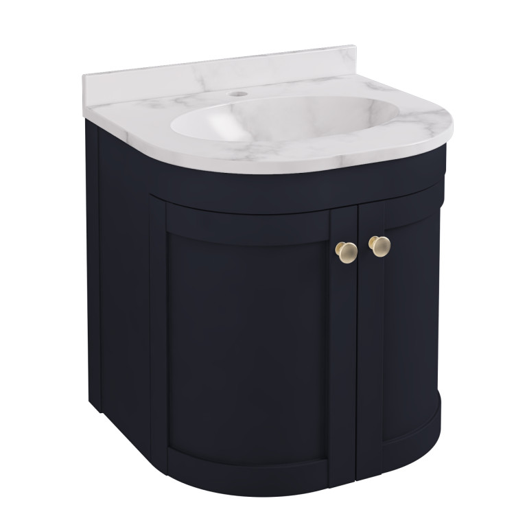The Hardwick bathroom furniture with the traditionally inspired curved lines and door panels of the vanity unit.