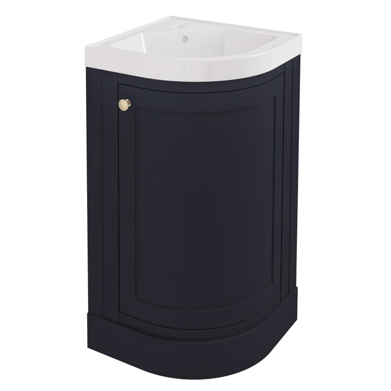 The Hardwick bathroom furniture with the traditionally inspired curved lines and door panels of the vanity unit.