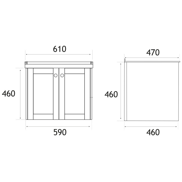 - 460mm (L) x 590mm (W) x 460mm (H)