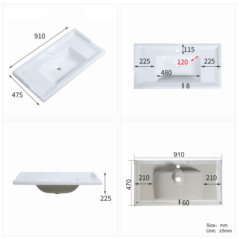 - Modern seamless one piece basin.
