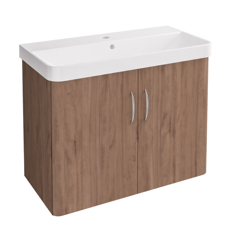 Cavone II 500 Wall Hung Door Unit only - Medium Oak (Basin & Tap Sold Separately)