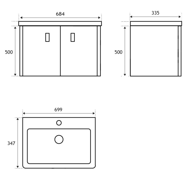 - 335mm (L) x 684mm (W) x 500mm (H)