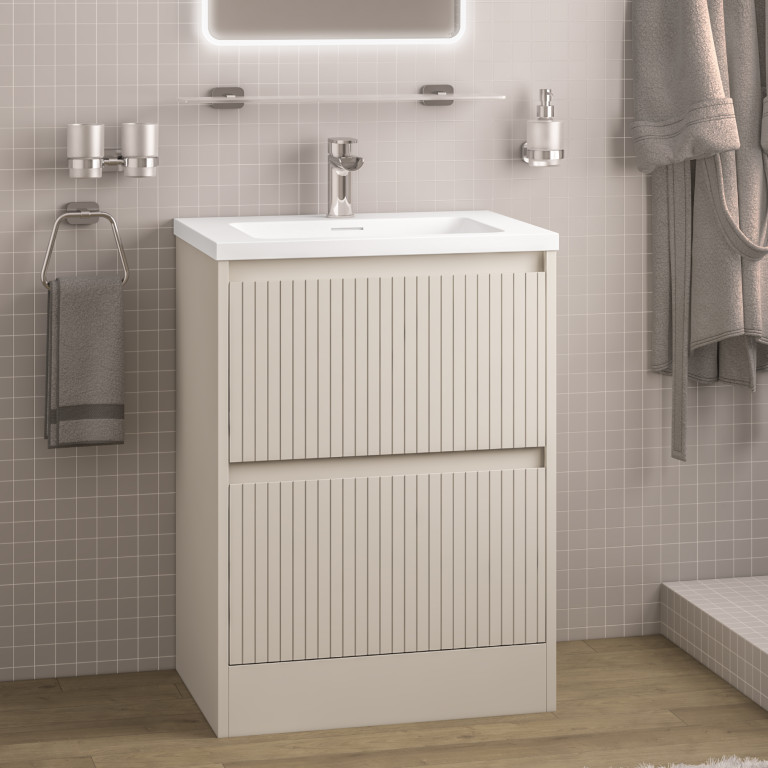 Stockton 60cm Fluted Wall Hung Unit only 1 Drawer - Cashmere (Basin & Tap Sold Separately)