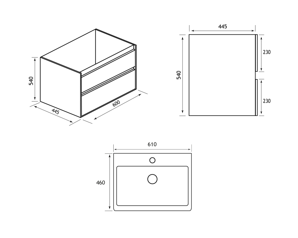 - 445mm (L) x 600mm (W) x 540mm (H)
