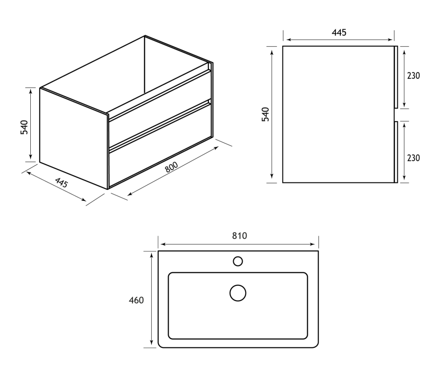 - 445mm (L) x 800mm (W) x 540mm (H)