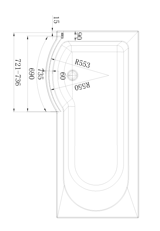 - 735mm (L) x 28mm (W) x 1400mm (H)