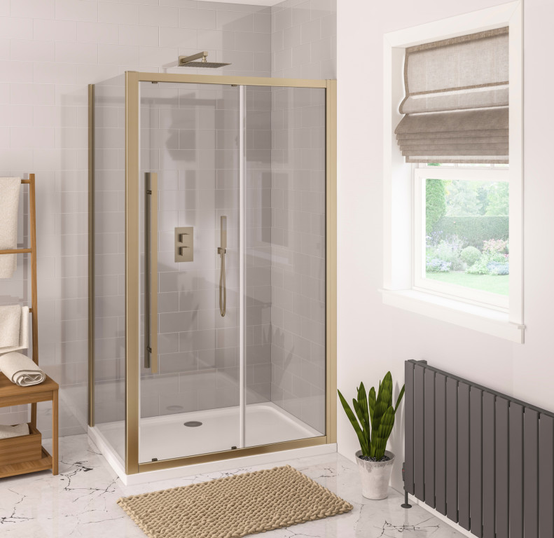 • Shower Enclosures Shower Doors Sliding Doors Vantage 2000 1500 slider Shower Door - Brushed Brass