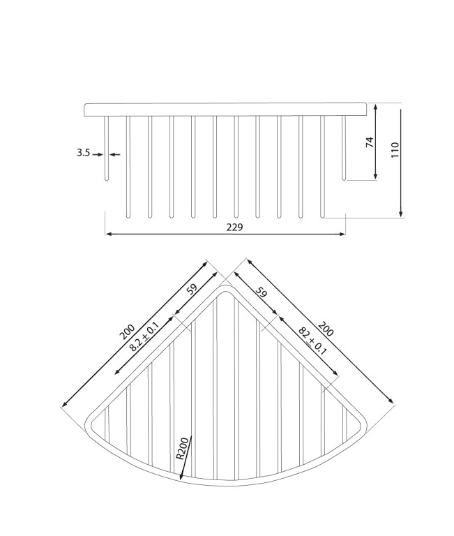 - 205mm (L) x 205mm (W) x 110mm (H)