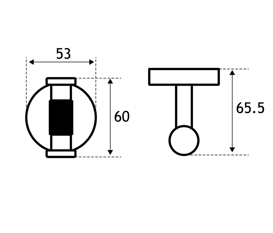 - 65.5mm (L) x 60mm (W) x 53mm (H)