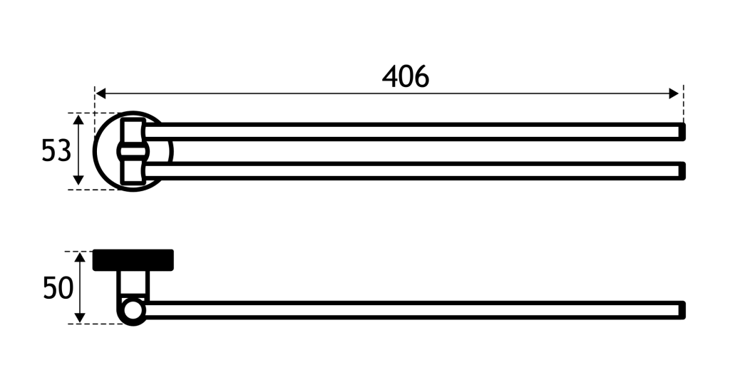 - 50mm (L) x 406mm (W) x 53mm (H)