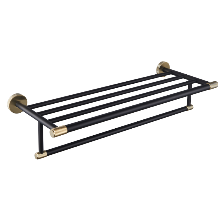 Catania Double Split towel rail - Matt Black/Brushed Brass