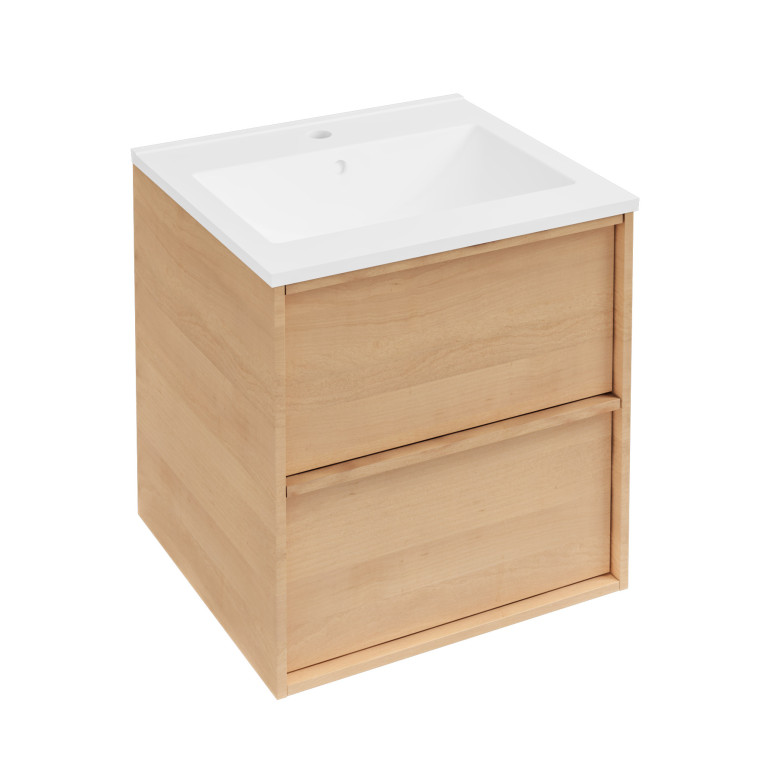 Ravensbourne 600 Wall Hung Drawer Unit only - Natural Oak (Basin & Tap Sold Separately)