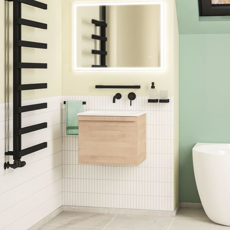 Kydbrook 600 Wall Hung Single Drawer Unit only - Light Oak (Basin & Tap Sold Separately)