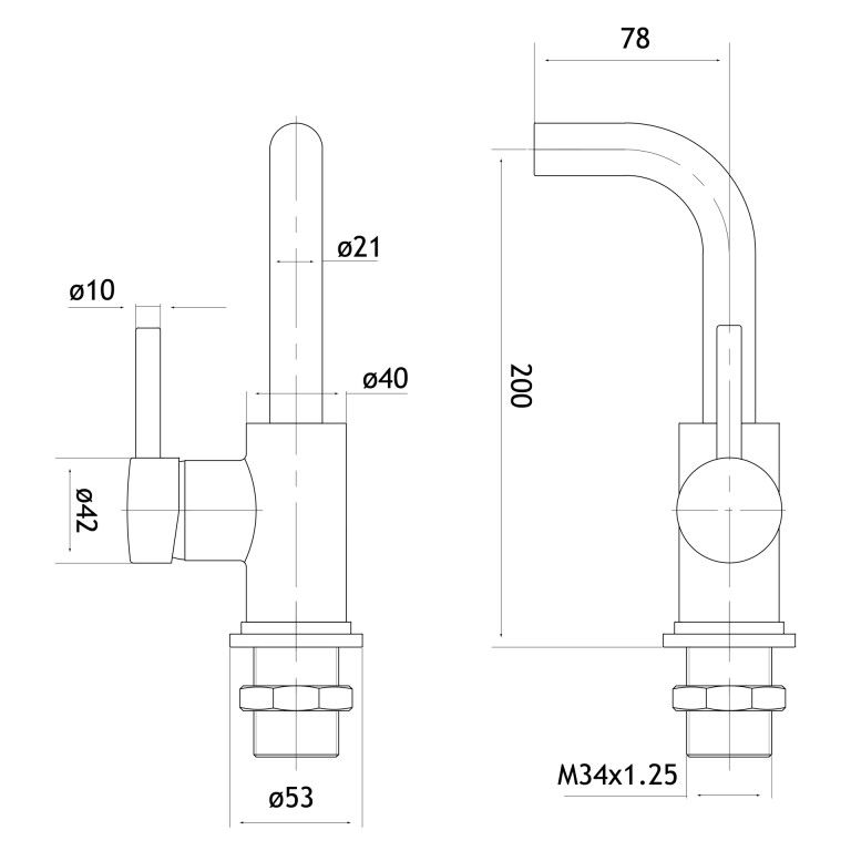 Meriden Wall mounted Curving spout single lever side action basin mixer - Chrome