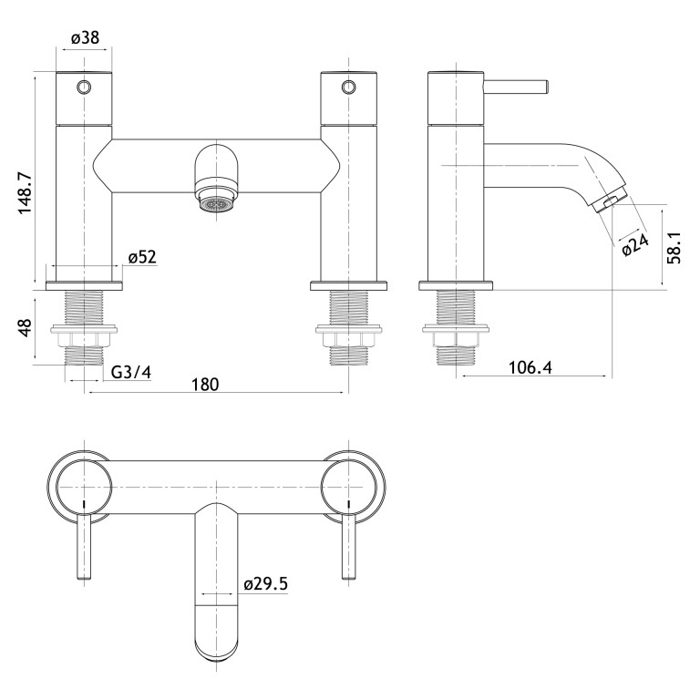 Meriden Bath Shower Mixer Hand set & hose & holder - Matt Black