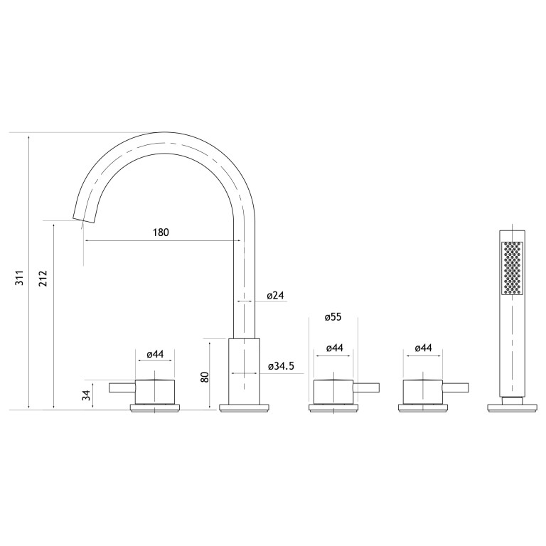 - Separate hot and cold handles.