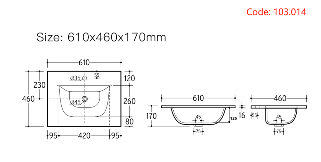 Universal 500 Basin only - White (Vanity unit & Tap Sold Separately)