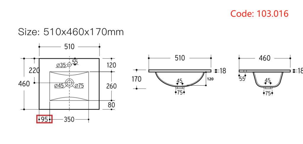 Universal 500 Basin only - White (Vanity unit & Tap Sold Separately)