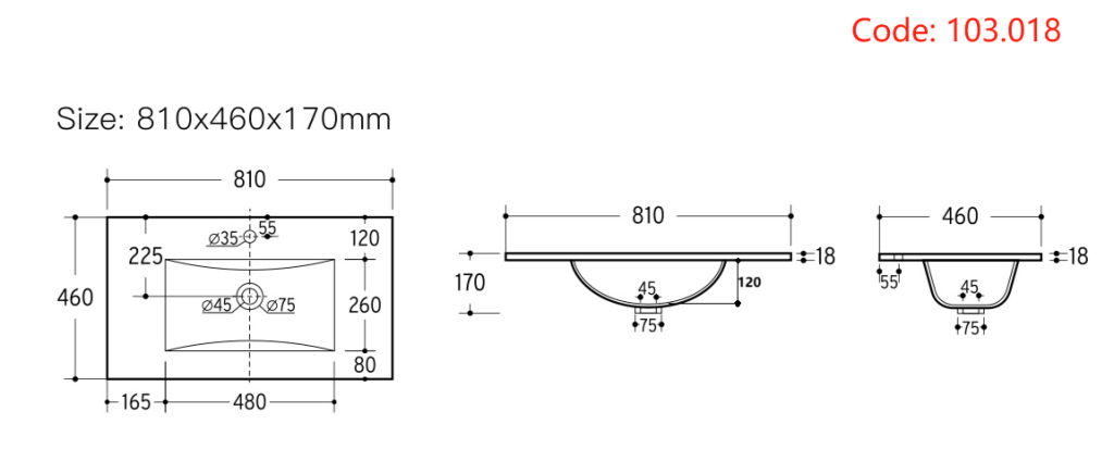 Universal 500 Basin only - White (Vanity unit & Tap Sold Separately)